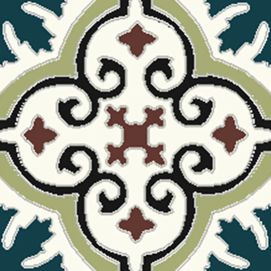 Carreaux de ciment de fabrication artisanale ; chaque carreau est fabriqué individuellement.Dim: 20 x 20 cm épais. 16 mm ; décor dans la masse épais. 5 mm.Couleurs : Blanc 48 / Vert olive 76 / Bleu nuit 50 / Marron 81 / Noir 40.Carreaux destinés pour revêtements de sols intérieurs : Cuisines, salles de bains, entrées, couloirs, salons, chambres, vérandas etc…Les carreaux de ciment sont naturellement poreux, il est conseillé de les imperméabiliser afin de les préserver de toutes taches et salissures.Conditionnement : carton de 14 pièces soit 0,56 m².Capturez l’essence du charme d’antan avec ce magnifique carreau de ciment qui apportera une touche d’authenticité et de raffinement à votre intérieur. Parfait pour les sols et les murs, il est idéal pour créer une ambiance chaleureuse et sophistiquée dans les cuisines, salles de bains, entrées ou même sur des crédences.Ce modèle présente une composition symétrique et répétitive, typique des carreaux de ciment traditionnels. Le design est centré autour d’un motif de trèfle ou de quadrilobe richement orné, formant un réseau de volutes élégantes.Une palette de couleurs classique avec le fond blanc qui apporte luminosité et contraste, un vert olive qui encadre délicatement les motifs, un bleu nuit et un rouge marron ajoutent du caractère et de la profondeur, enfin, les lignes de contour noir soulignent la finesse du dessin.Ce carreau crée une ambiance décorative, idéal pour un style vintage, rétro, maison de famille, méditerranéen ou art nouveau revisité. Il crée instantanément un point focal visuel et s’harmonise parfaitement avec des éléments modernes, industriels ou rustiques, offrant une flexibilité de design unique.