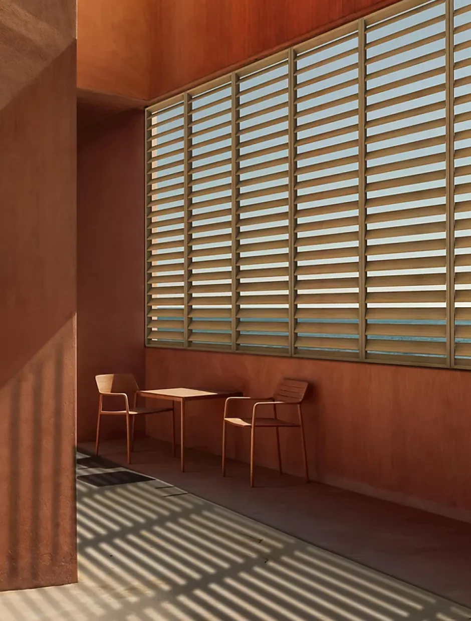 Panneaux persiennés à lamelles réglables permettant de diviser l’intérieur d’une pièce de manière esthétique et moderne, en permettant de couper visuellement ou de fermer complètement l’espace.
