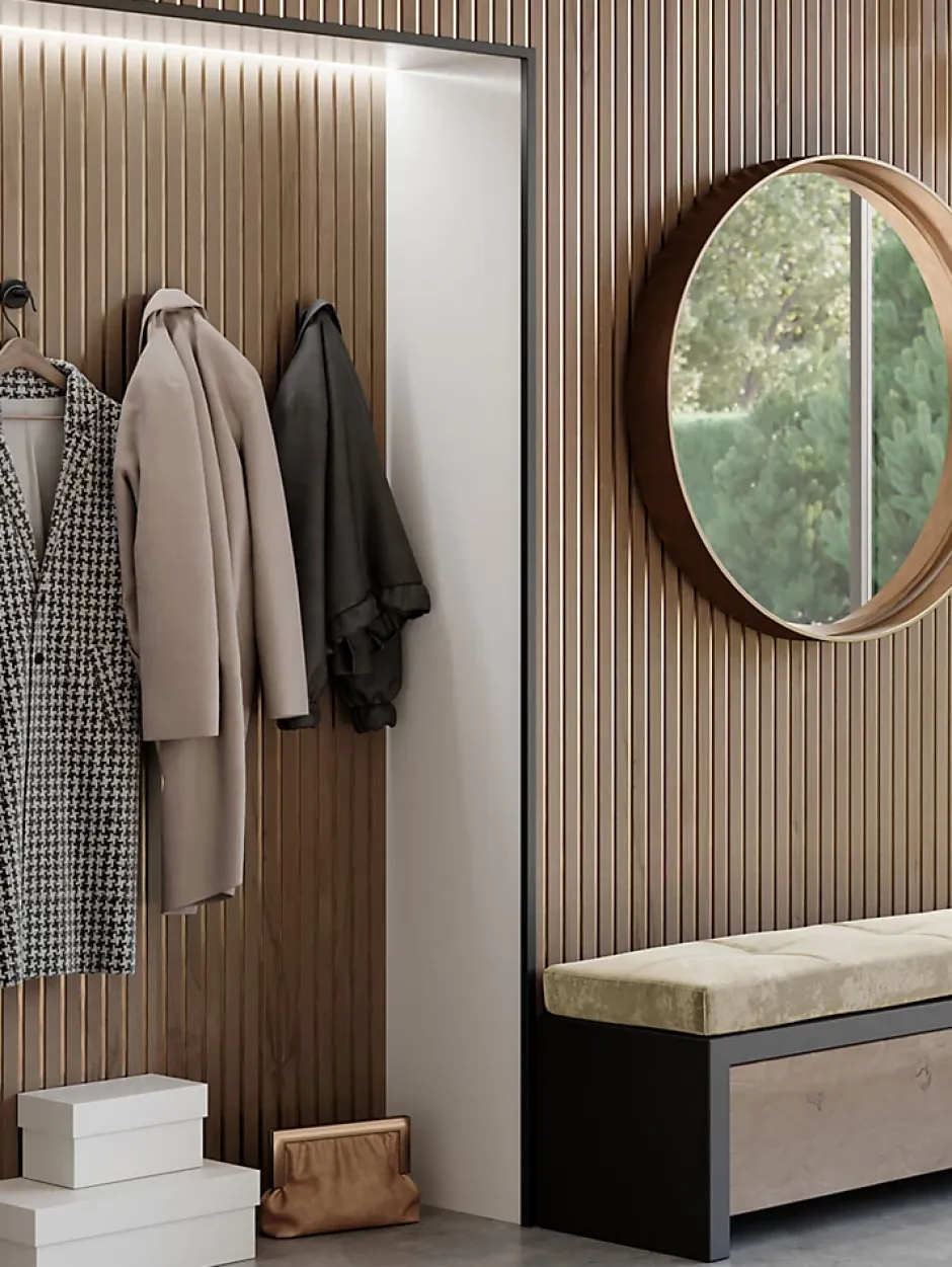Lot de 2 panneaux muraux décoratifs – Catsle oak sur fond bronzeDimensions (unité) : 2770 x 287 x 20 mm – 0,795 m² par panneau (1,59 m² pour le lot)Épaisseur : 20 mmFinition :Panneaux lisses avec revêtement en MDFLivraison : sur RDV au pied de l’immeublePose facile – Mur ou plafondInstallation rapide et soignéeGrâce à leur système à rainure et languette, ces panneaux décoratifs s’installent facilement, sans besoin d’outillage complexe. Pose possible à la verticale ou à l’horizontale, au mur comme au plafond.Fixation par colle ou agrafe , selon vos préférences.Un revêtement mural décoratif au rendu haut de gammeAvec leurs lignes verticales parfaitement structurées, ces panneaux transforment n’importe quel mur en un élément architectural fort. Leur finition soignée et leur jeu de contraste apportent du relief, de la profondeur et une vraie signature design à votre intérieur.Ambiance élégante et effet visuel dynamiqueLe relief des profilés crée des variations de lumière selon l’éclairage naturel ou artificiel, accentuant la sophistication du décor. Ils s’intègrent harmonieusement dans des ambiances modernes, minimalistes, industrielles ou chaleureuses.Amélioration acoustique intégréeOutre leur esthétique, ces panneaux contribuent à réduire l’écho et à améliorer le confort acoustique. Les ondes sonores sont partiellement absorbées entre les rainures, pour une ambiance plus feutrée et agréable, que ce soit dans un salon, un bureau ou une chambre.