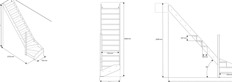 Escalier quart tournant gauche Fortia hêtre coloris naturel 13 marches Siderno avec contremarche