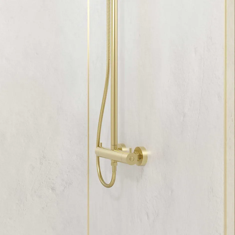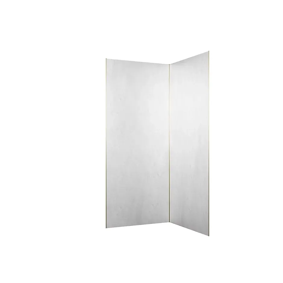 Pack de 2 panneaux muraux de salle de bains, blanc effet pierre avec profilés dorés, l.90+90 x H.210 x P.0,3 cm, Galedo Homestone