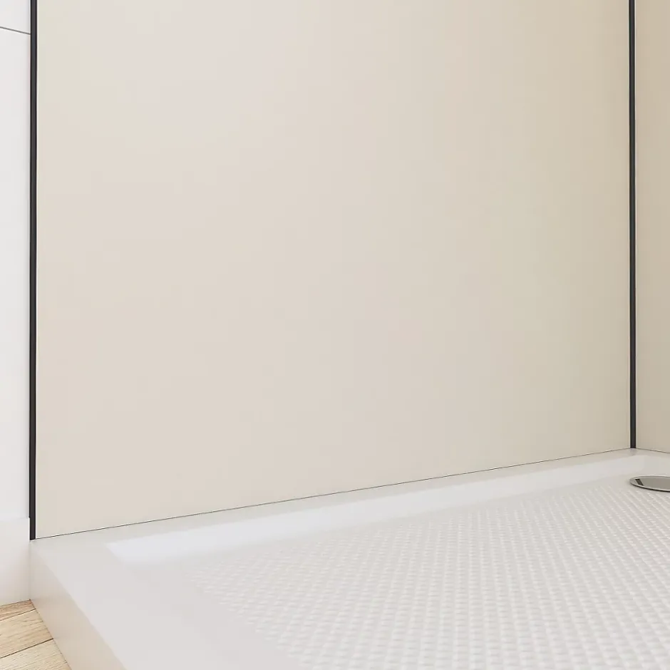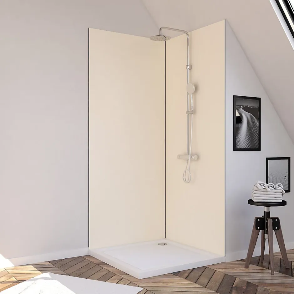 Pack de 2 panneaux muraux de salle de bains, ivoire avec profilés noirs, l.90+90 x H.210 x P.0,3 cm, Galedo Alucolors