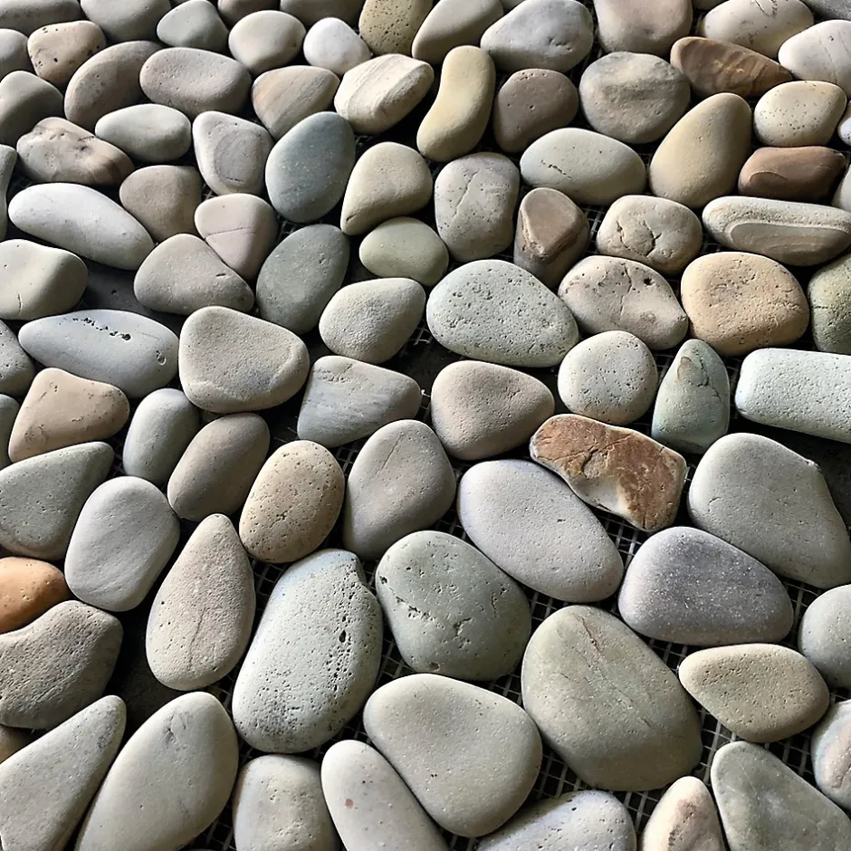 Dans un intérieur inspiré de Bali, le galet naturel sur filet 30×30 cm golden, mat transforme votre espace en un havre de paix. Ce galet naturel, avec son effet pierre et sa finition mate, évoque la sérénité et l’authenticité.La texture irrégulière de ce galet naturel en opus offre une sensation tactile unique, rappelant les plages de galets lissés par le temps. Sa couleur grise subtile capte la lumière de manière douce, créant une atmosphère apaisante dans votre cuisine ou salle de bain. La solidité de la matière assure une résistance durable, tandis que son classement d’antiglissance PN24C garantit une sécurité optimale. Avec une épaisseur de 10 mm, il s’intègre harmonieusement dans tout intérieur, ajoutant une touche naturelle et intemporelle.Pour une pose réussie, veillez à bien préparer la surface et utilisez un joint adapté pour préserver l’esthétique. Un entretien régulier avec des produits doux maintiendra son éclat au fil du temps.Transformez votre espace avec le galet naturel sur filet, une invitation à l’évasion et à la tranquillité. Découvrez la beauté intemporelle de ce carrelage dès aujourd’hui.
