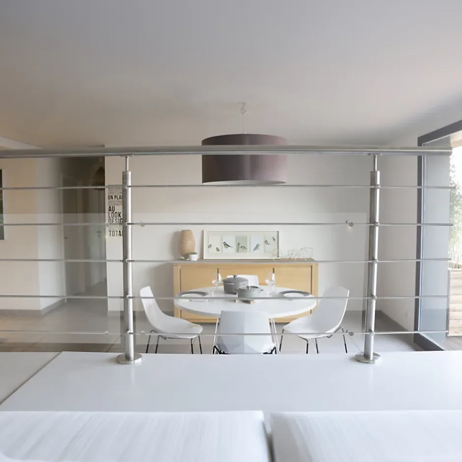Le garde-corps INOCA en fixation à plat est une solution prêt-à-poser de qualité professionnelle et made in France. En inox A4 AISI 316L avec une main courante également en inox, c’est le garde-corps tout-terrain fait pour durer : intérieur, extérieur, compatible en bord de mer et abords de piscines extérieures.Avec sa finition satinée (aspect brossé très fin), il arbore un look industriel moderne qui complimentera une mezzanine, une terrasse, un balcon ou un escalier… Elle est compatible pour une pose sur surface plane ou en escalier.Dimensions : Dimensions kit complet : 135 x 1027 x 2400 mm Dimensions poteau : 135 x 1027 x 125 mm Dimensions tubes : 10 x 10 x 2400 mm Dimensions main courante : 42 x 42 x 2400 mm Composition du kit : 2 poteaux en inox A4 AISI 316L avec platines de fixation intégrées 1 main courante en Inox A4 AISI 316L + 2 embouts de finition 5 tubes de remplissage en inox + 5 assembleurs + 10 capuchons de finitionAccessoires complémentaires, vendus séparément : Prévoir 1 poteau de finition Des kits de panneaux de protection pour la mise en conformité à la norme de sécurité Pour les éventuels angles, prévoir des kits d’angle fixe 90° ou variable 90° à 180° Visserie de fixation au sol non fournie (goujons, tirefonds,…), à choisir selon la nature de votre sol.Caractéristiques : Coloris : Inox Matériau : Inox 316 Fixation : à plat Utilisation : intérieur, extérieur, milieu salin Entraxe maximum : 1200 mm Garantie : 5 ans Nous estimons qu’il faudra 1h par mètre linéaire. Conformité à la norme : Pour assurer la conformité aux normes de sécurité NF P 01-012 et NF P 01-013, il convient d’ajouter des panneaux de protection transparents la hauteur de chute est supérieure à 1m. Ce n’est pas obligatoire pour les montées d’escalier.L’entraxe poteaux de ne doit pas dépasser 1200 mm.
