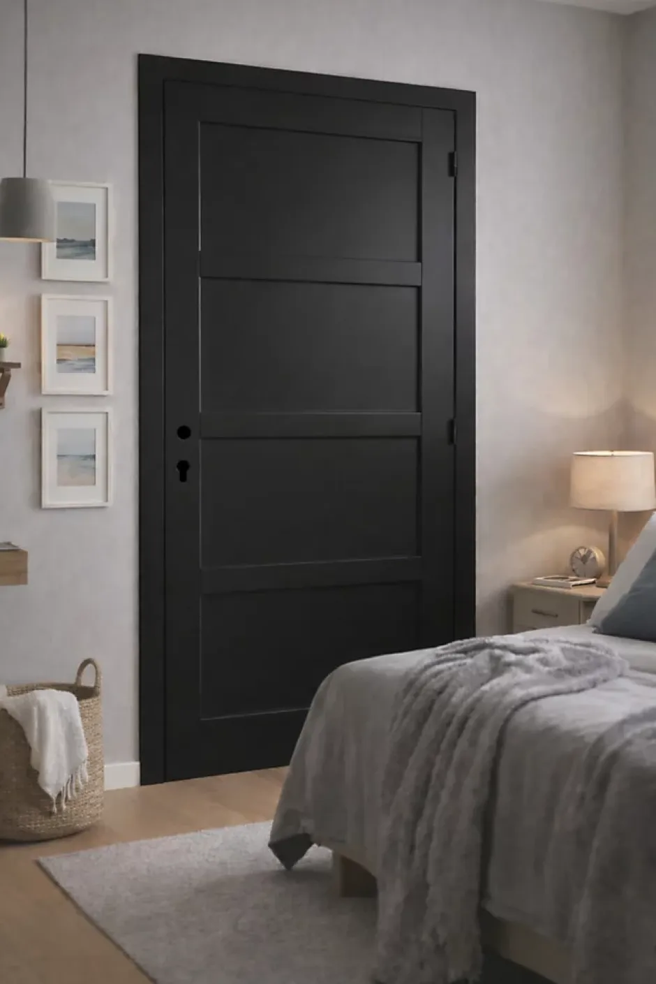 Bloc-porte Telia Noir 4 panneauxDesign graphique et confort interieurLe bloc-porte Telia Noir 4 panneaux est une solution elegante et contemporaine pour structurer vos espaces interieurs avec caractere. Realise en MDF enrobe noir et fabrique en France, il seduit par son design graphique et sa finition moderne.Avec une dimension cotes tableau de H 204 x L 73 cm et une dimension hors tout de H 211,6 x L 81,5 cm, ce bloc-porte est equipe d’un ouvrant de 40 mm d’epaisseur, garantissant robustesse et stabilite. Les montants et traverses en MDF enrobe noir, associes a un talon de 30 mm, assurent une finition soignee et une excellente tenue dans le temps.La porte est composee de quatre panneaux MDF, offrant un rendu structure et elegant. L’ensemble est monte sur une huisserie ajustable de 72 a 100 mm, permettant une adaptation parfaite a differentes epaisseurs de murs.Livre pret a poser, le bloc-porte comprend une serrure a cle et une gache posees, ainsi qu’un joint d’isolation isophonique pour un confort acoustique optimal.Sens d’ouverture : poussant gauche.Poignee non fournie.Conçu exclusivement pour un usage interieur, ce bloc-porte doit imperativement etre installe dans un espace chauffe et isole, afin de garantir sa durabilite et ses performances.