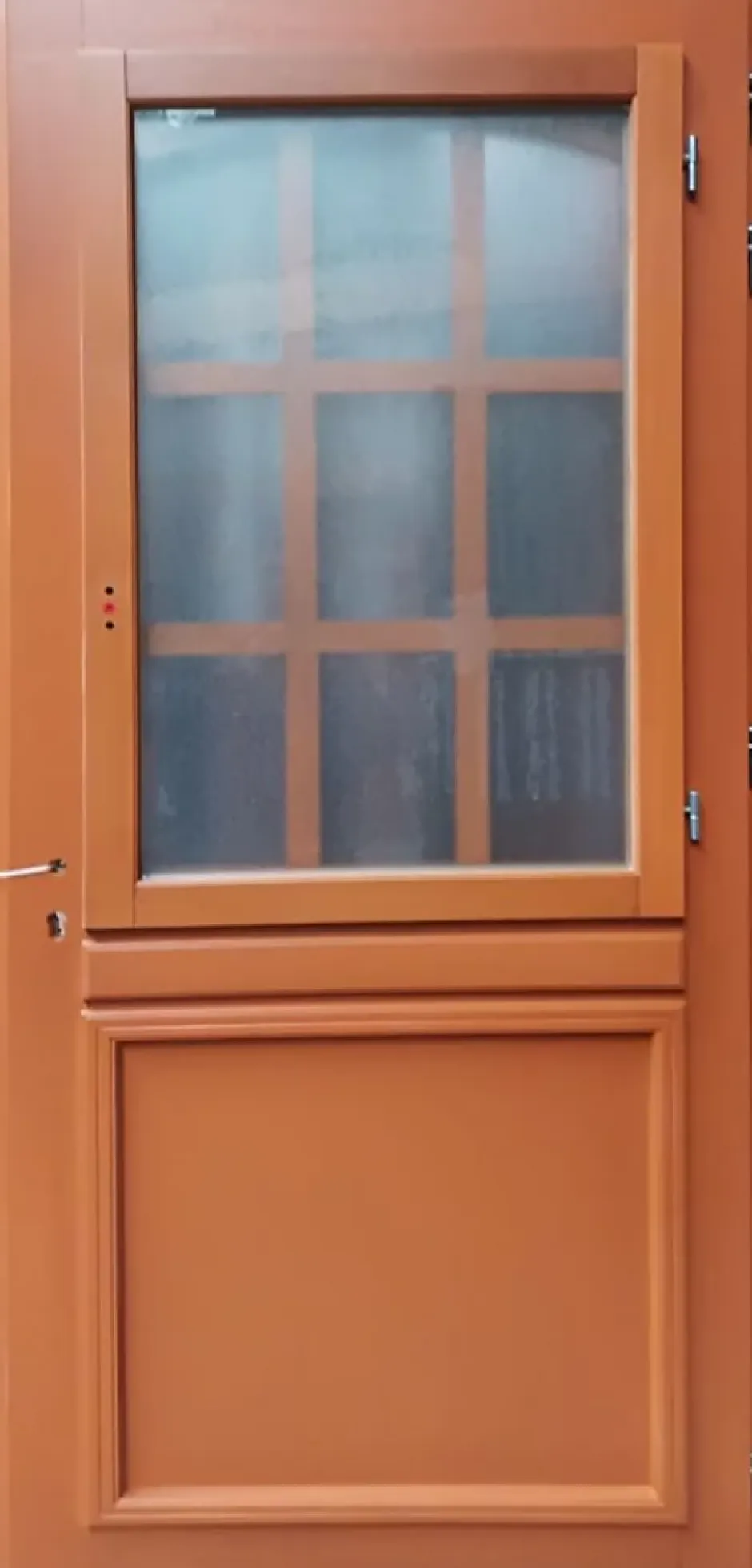 Decouvrez notre porte d’entree en bois vitree, modele Marine, conçue pour allier esthetique moderne et fonctionnalite. Cette porte robuste mesure 200 cm de hauteur et 80 cm de largeur (204.6 x 87.8 cm cote totale hprs tout), avec une ouverture a gauche.