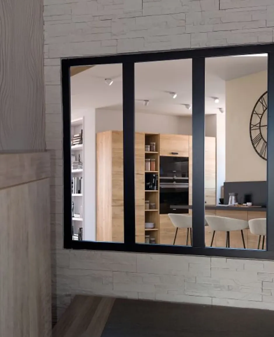 Verriere bois MDF noir 3 vitrages clairs Esprit atelier et design contemporain La verriere en MDF enrobe noir est ideale pour structurer les espaces tout en conservant une luminosite optimale. Avec son style atelier et ses lignes graphiques, elle s’integre parfaitement dans les interieurs contemporains, industriels ou modernes. D’une dimension de H 1080 mm x L 1123 mm, cette verriere est composee de 3 vitrages clairs de 4 mm, favorisant une belle diffusion de la lumiere naturelle. Realisee en MDF enrobe noir et fabriquee en France, elle offre une finition elegante et une excellente qualite de fabrication. Les verrieres sont livrees non montees, avec des pre-perçages realises en usine pour faciliter l’assemblage et la pose. Les vitrages clairs de 4 mm ainsi que les vis de fixation sont fournis, pour une installation simplifiee. Cette verriere peut etre assortie a une porte d’atelier, partageant le meme profil, pour une harmonie parfaite dans vos amenagements interieurs. Conçue pour un usage interieur uniquement, elle doit imperativement etre installee dans un espace chauffe et isole, afin de garantir sa durabilite et ses performances.