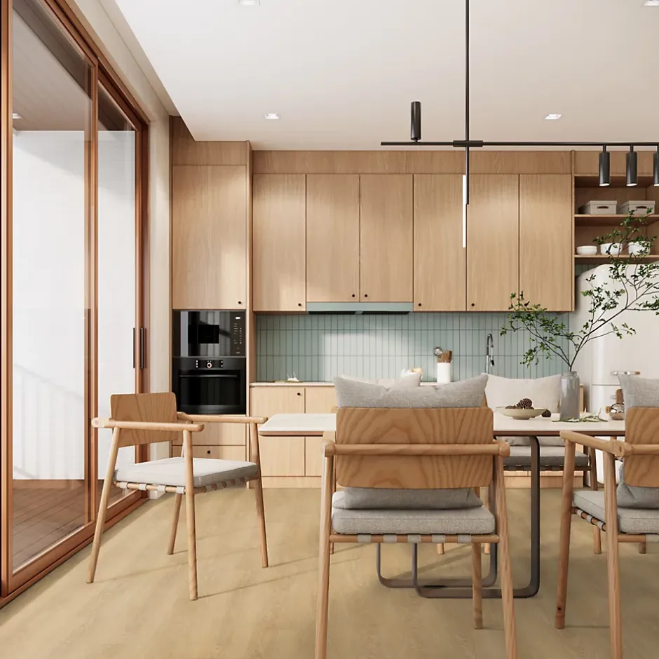 - Résistant à l’eau et compatible chauffage au sol. Il peut être posé devant une véranda, sous réserve que la température au sol soit inférieure à 65°C.