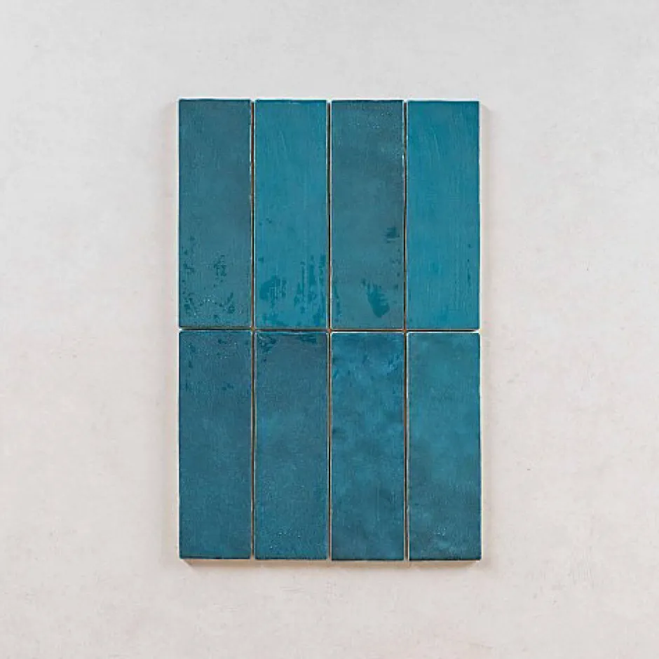 Le carrelage mural faïence effet zellige LA RIVIERA est disponible en 11 couleurs vibrantes, inspirées des zelliges marocains avec une finition légèrement irrégulière. Ces teintes variées, allant des neutres aux vives, apportent dynamisme et charme unique à vos murs. La collection offre une finition brillante pour une touche artisanale raffinée, parfaite pour créer des espaces harmonieux et sophistiqués. RECOMMANDATION : prévoir un volume de 10% ou 15% supplémentaire (pose droite ou diagonale) par rapport à votre surface pour les pertes liées aux coupes et au calepinage.