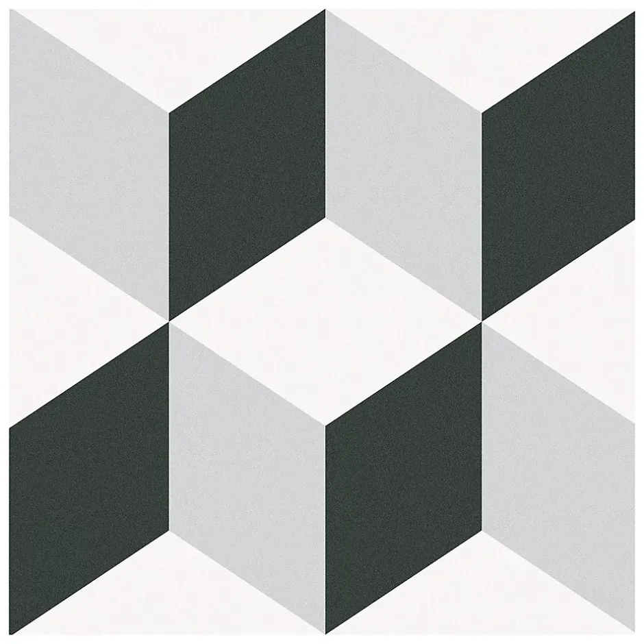 De la couleur uni au motif classique ou traditionnel en passant par des motifs orientaux ou bien des designs modernes, le grès cérame se met à l’heure du carreau ciment. Très tendance, il amène une touche d’authenticité et de fantaisie sur votre sol ou mur. Vous pouvez désormais opter pour une base grès cérame pour ce produit, l’avantage étant son caractère non poreux et son prix moins élevé que le carreau ciment traditionnel.Couleurs : gris moyen, noir et blancFormat : 25x25cmÉpaisseur : 0,8cmFinition : Mat Effet : Carreau Ciment Coloré / motif cube 3DApplication : sol et mur / intérieur RECOMMANDATION : prévoir un volume de 10% ou 15% supplémentaire (pose droite ou diagonale) par rapport à votre surface pour les pertes liées aux coupes et au calepinage.