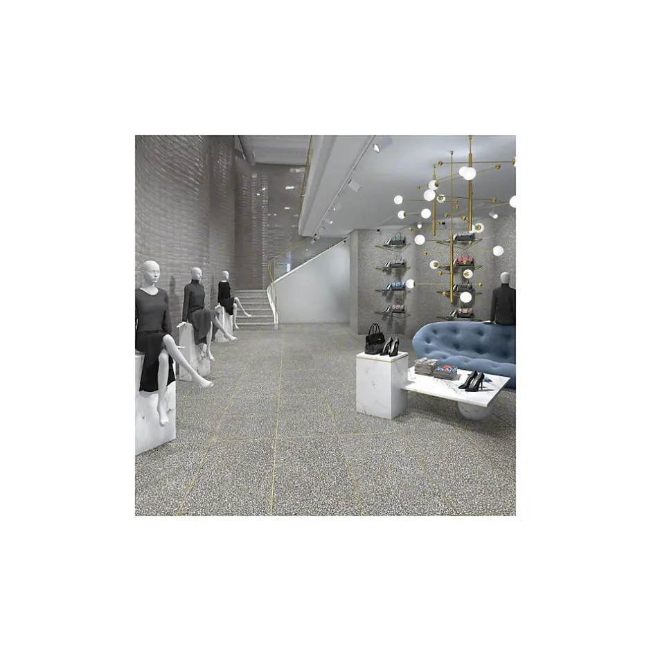 Retrouvez un effet terrazzo très réussi et avec des grands formats (60x60cm, 80x80cm ou 120x60cm) et deux finitions possibles (mat ou semi-poli). Couleurs : gris clair (Humo) / gris moyen (Cemento) / crème (Crema) / anthracite (Grafito) Formats (rectifiés) : 120×60 / 80x80cm / 60×60 / plinthes 60x10cm ou 80x10cmÉpaisseur : 1cmFinition : Mat / Semi-poliEffet : Terrazzo GranitoApplication : sol et mur / intérieur et extérieur RECOMMANDATION : prévoir un volume de 10% ou 15% supplémentaire (pose droite ou diagonale) par rapport à votre surface pour les pertes liées aux coupes et au calepinage.Retrouvez un effet terrazzo très réussi et avec des grands formats (60x60cm, 80x80cm ou 120x60cm) et deux finitions possibles (mat ou semi-poli).