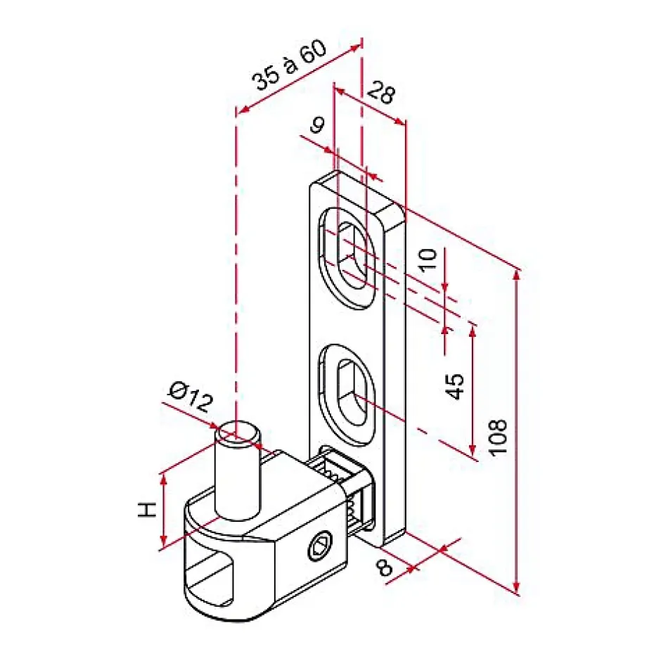 Le gond de portail MULTIFIX L de Tirard, est fabriqué à partir d’une combinaison robuste de cupro-aluminium pour son embase et son oreille. Ce choix de matériau garantit une excellente résistance à la corrosion ainsi qu’aux diverses conditions climatiques, ce qui rend ce gond particulièrement adapté pour les utilisations extérieures sur le long terme.Cette pièce est spécialement conçue pour faciliter l’installation lors de projets d’aménagement extérieur. La structure du gond MULTIFIX L permet un montage simple et efficace, optimisant le temps d’installation tout en assurant une fixation solide.Grâce à sa conception bien pensée, le gond de portail MULTIFIX L assure une utilisation quotidienne fiable et fonctionnelle. Les utilisateurs bénéficient ainsi d’une solution pratique et durable pour l’installation de leur portail, avec une sécurité accrue et une maintenance réduite. Caractéristiques techniques :Matière : cupro-aluminiumDiamètre : 12 mm