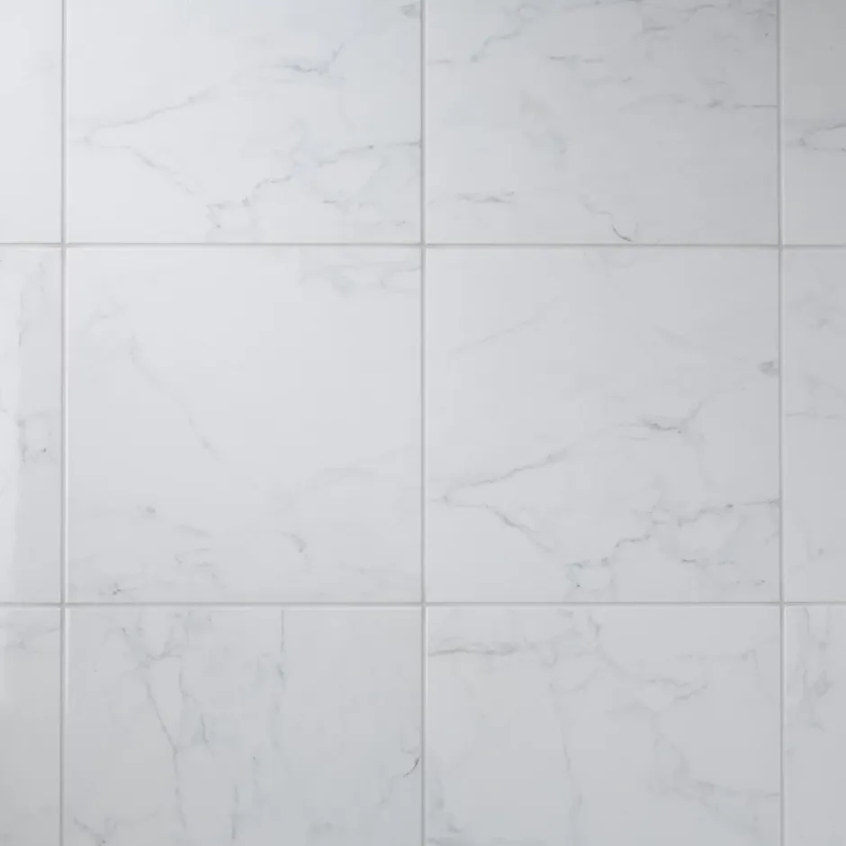 Carrelage sol et mur effet marbre blanc brillant L.45 x l.45 cm x ép.9,5 mm – lot de 6, Goodhome Aruma