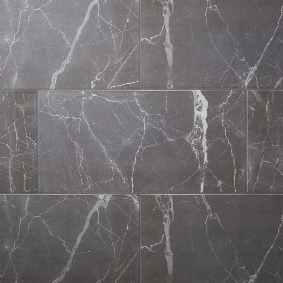 Carrelage sol et mur effet marbre gris brillant L.60 x l.30 cm x ép.9 mm – lot de 7, GoodHome Aruma