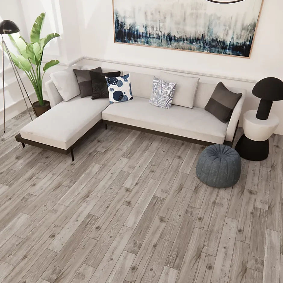 Carrelage sol et mur intérieur effet chêne gris L.90 x l.15 cm x ép.10 mm – lot de 8, GoodHome Vintage Oak