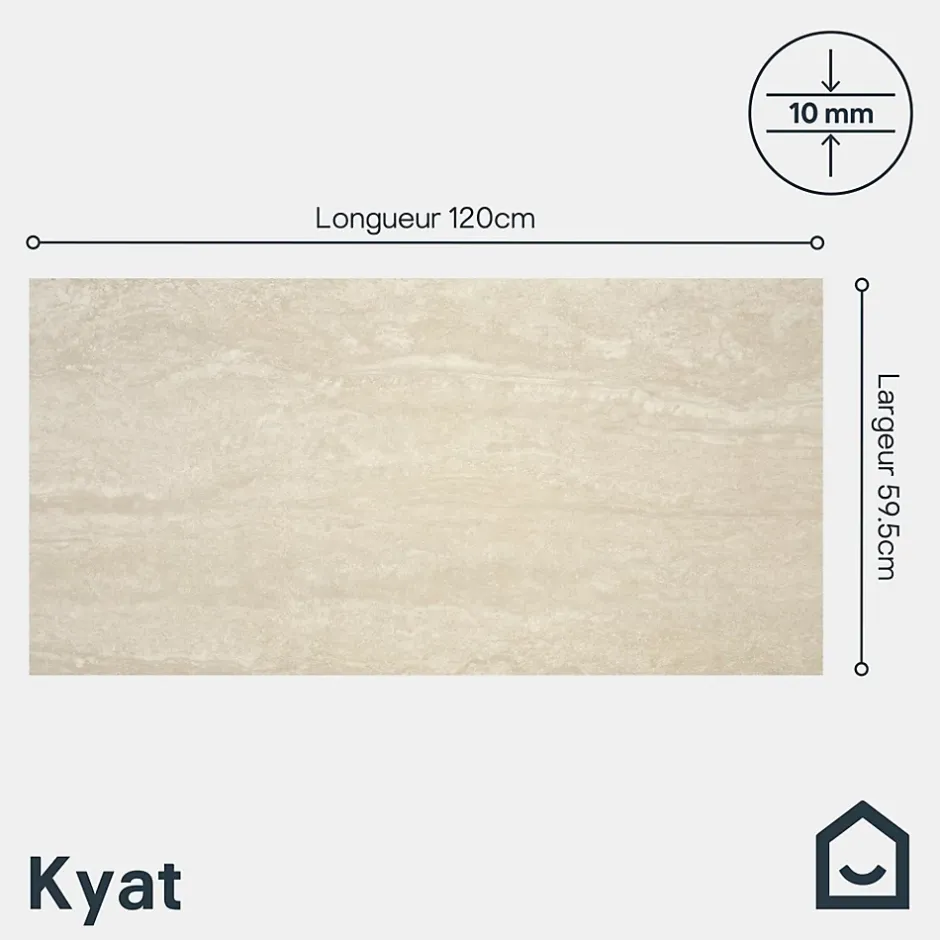 Le carrelage intérieur sol et mur en grès cérame émaillé beige Kyat offre une finition pierre élégante, parfait pour créer un style moderne dans n’importe quelle pièce. Ce carrelage sol et mur rectifié, qui ne nécessite qu’un joint de carrelage de 2mm, est adapté au chauffage au sol, pour plus de confort.