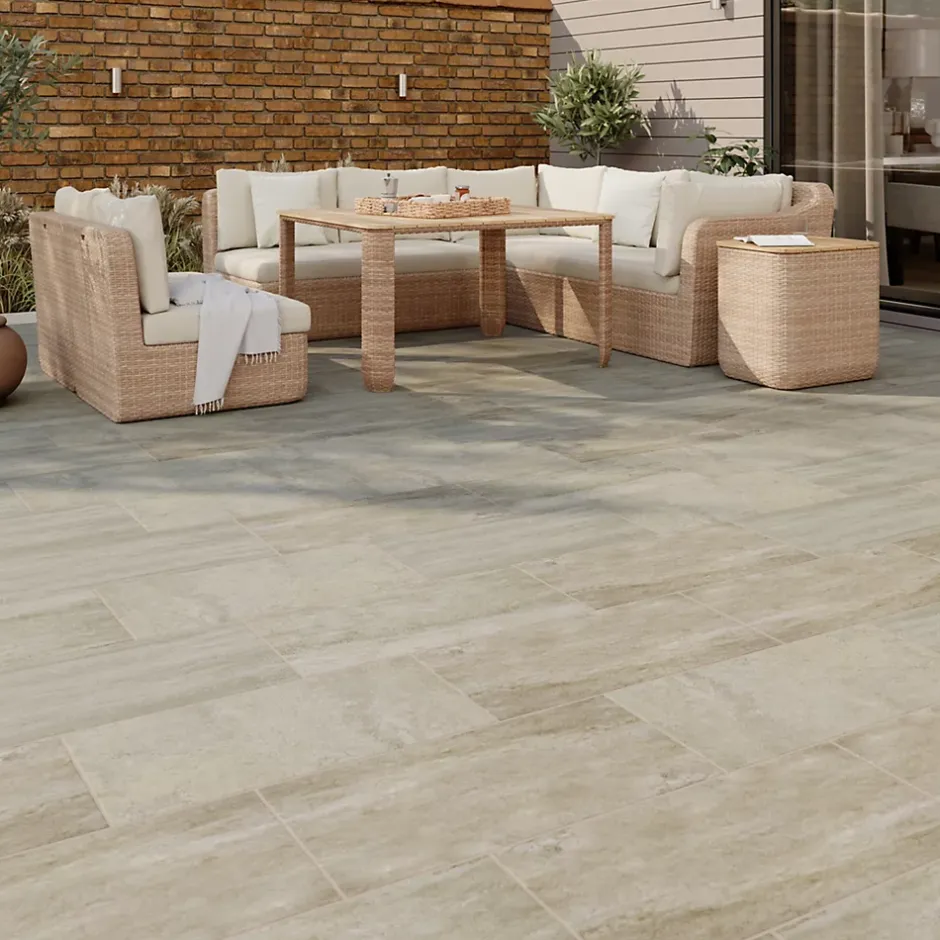Notre gamme de carrelage extérieur a été conçue dans une variété de styles et de finitions pour que vous trouviez facilement le modèle adapté à votre espace. Éclaircissez votre espace extérieur avec ce carrelage beige classique facile à nettoyer
