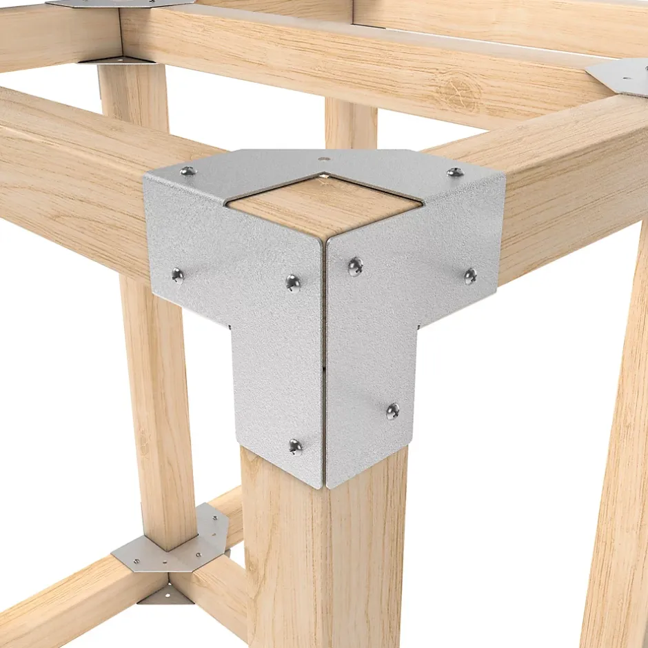 - Simplicité d’utilisation : pliez simplement les connecteurs à la main, insérez l’élément en bois et vissez dans les trous pré-percés.