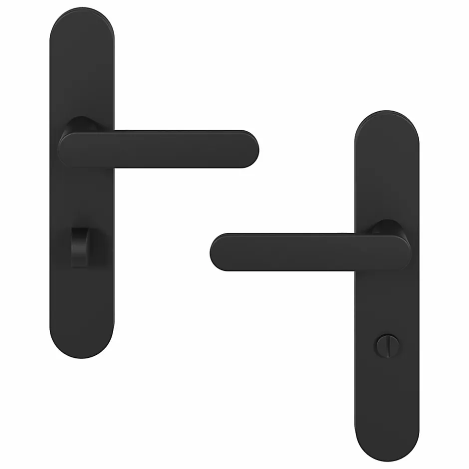Ensemble poignée sur plaque rond à condamnation GoodHome Minzh effet nickel mat noir L.120mm x l.42mm entraxe 165-195mm