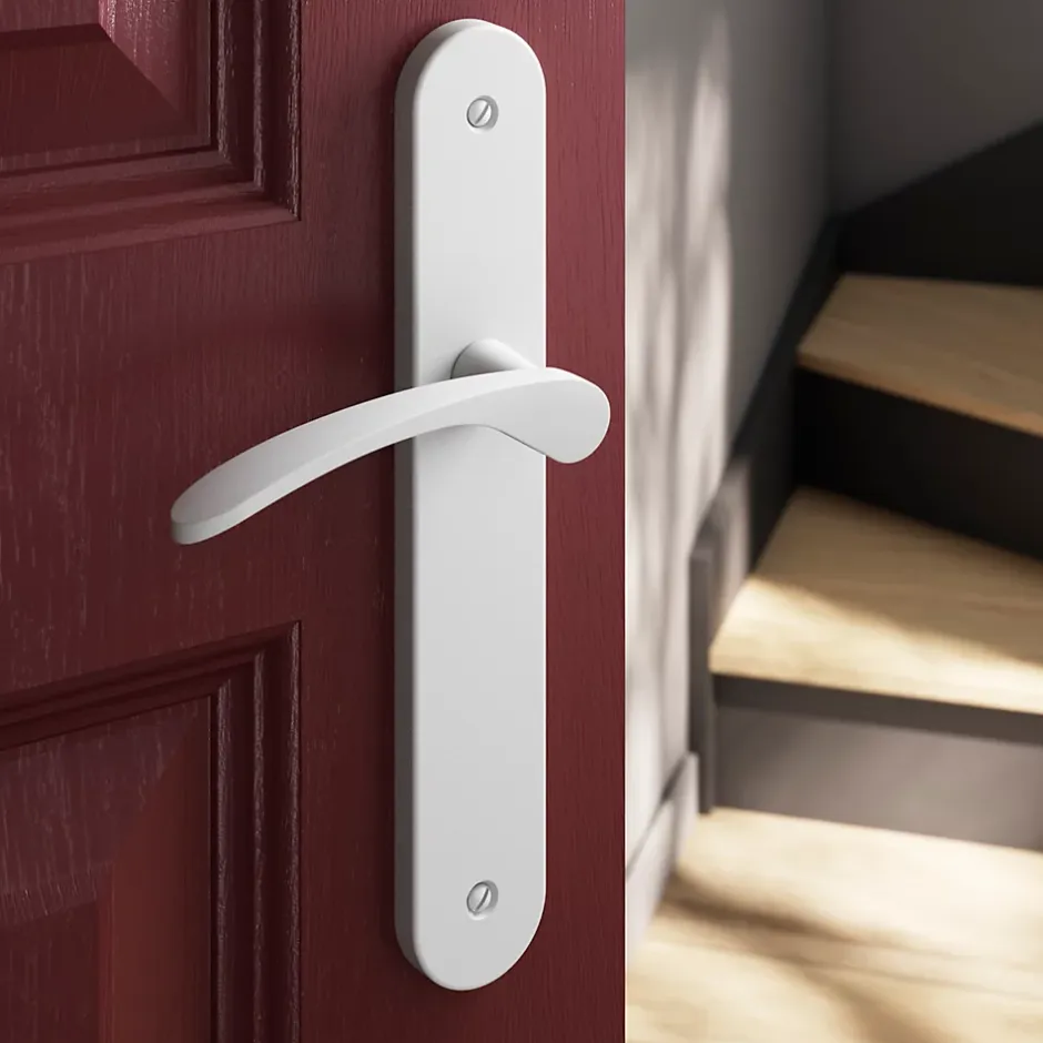 Ensemble poignée sur plaque rond GoodHome Beare mat blanc L.110.5mm x l.40mm entraxe 195mm