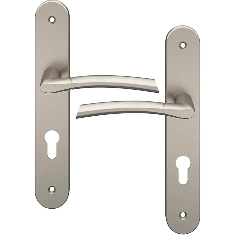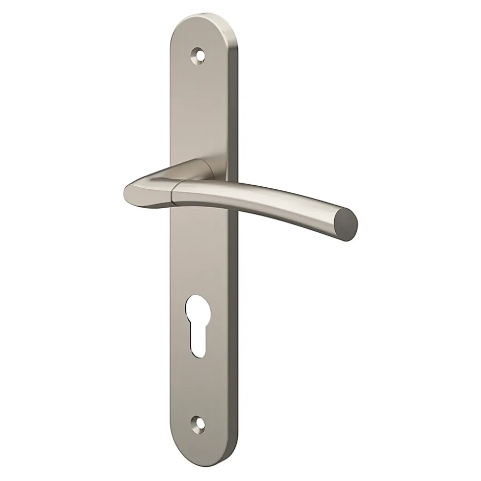 Ensemble poignée sur plaque rond cylindre GoodHome Hirel effet nickel satin gris chromé L.128mm x l.40mm entraxe 195mm
