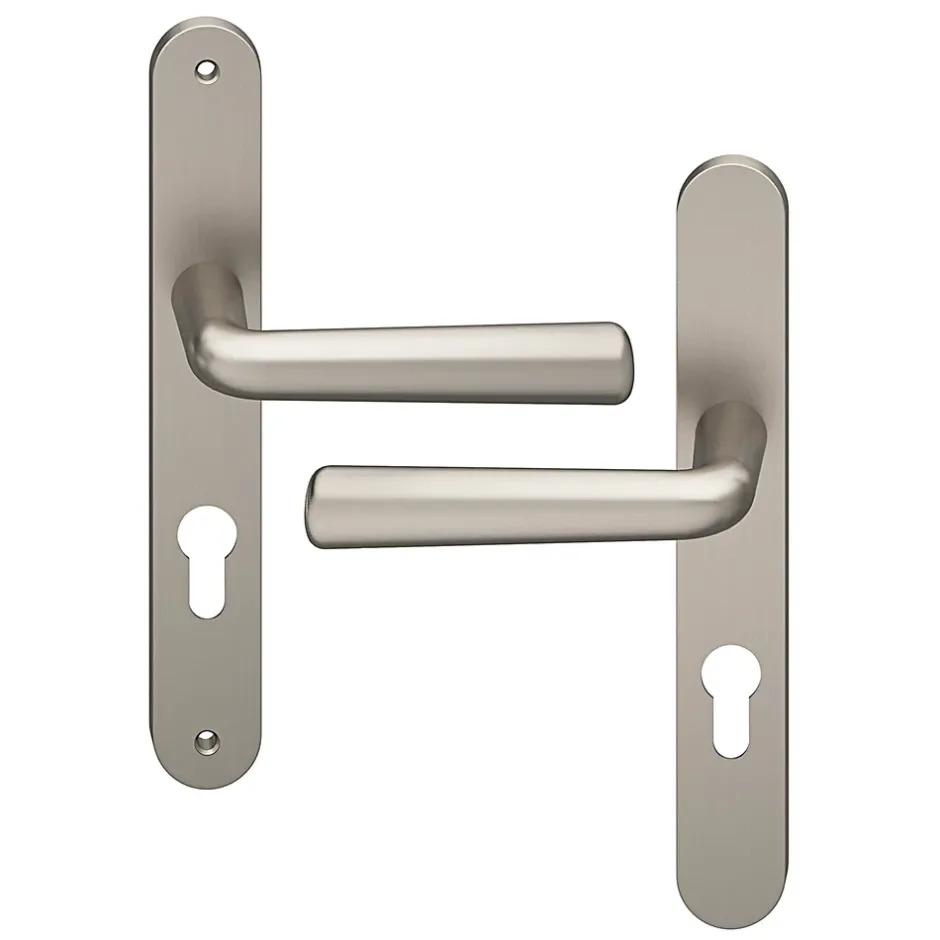 Ensemble poignée sur plaque rond GoodHome Dizel effet nickel satin gris L.121.5mm x l.33mm entraxe 195mm