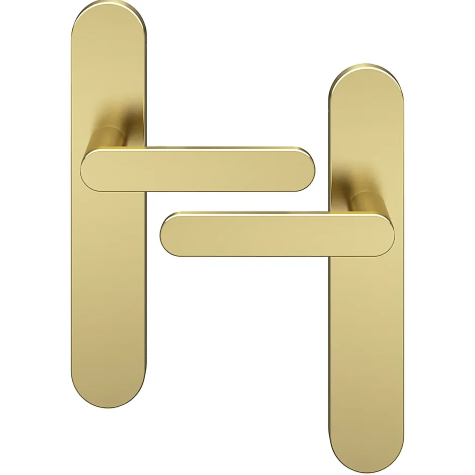 Ensemble poignée sur plaque rond GoodHome Minzh effet laiton satin doré L.120mm x l.42mm entraxe 165-195mm