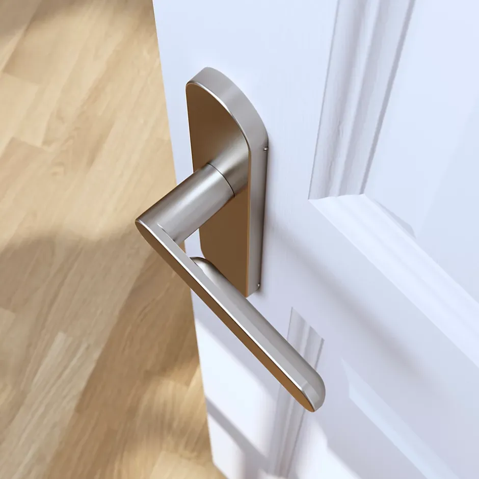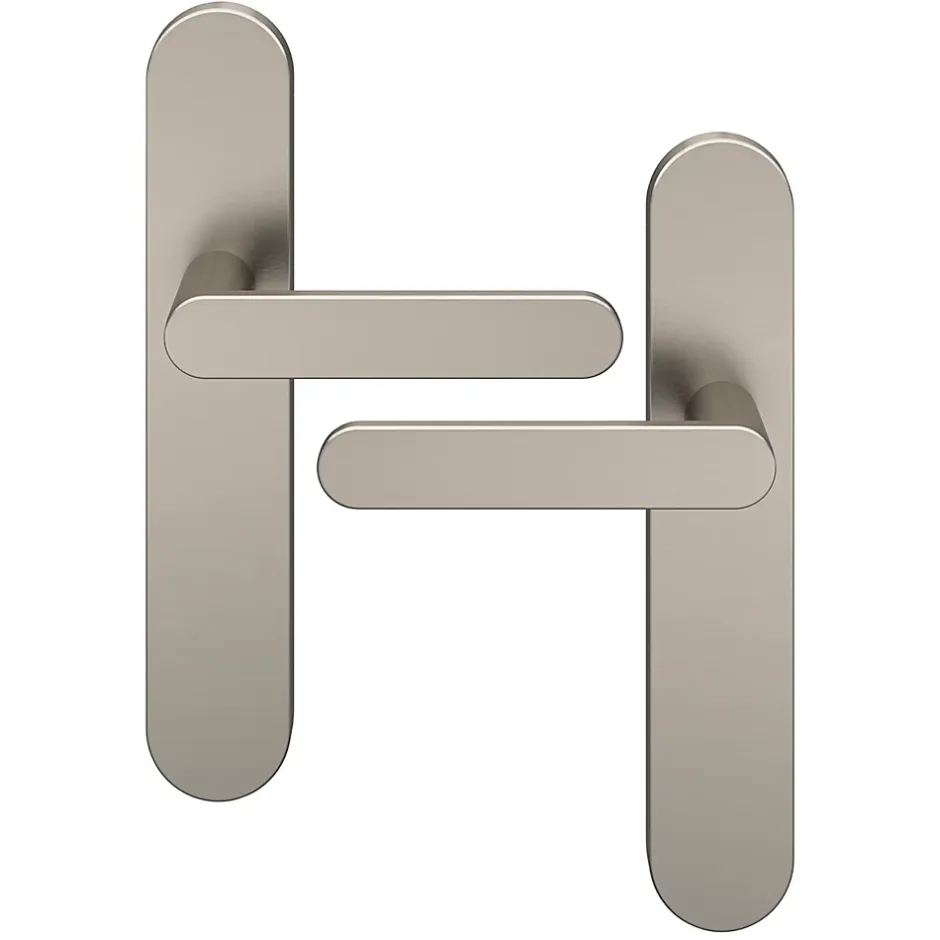 Ensemble poignée sur plaque rond GoodHome Minzh effet nickel satin gris L.120mm x l.42mm entraxe 165-195mm
