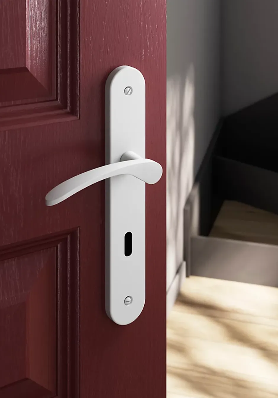 Ensemble poignée sur plaque rond serrure GoodHome Beare mat blanc L.110.5mm x l.40mm entraxe 195mm