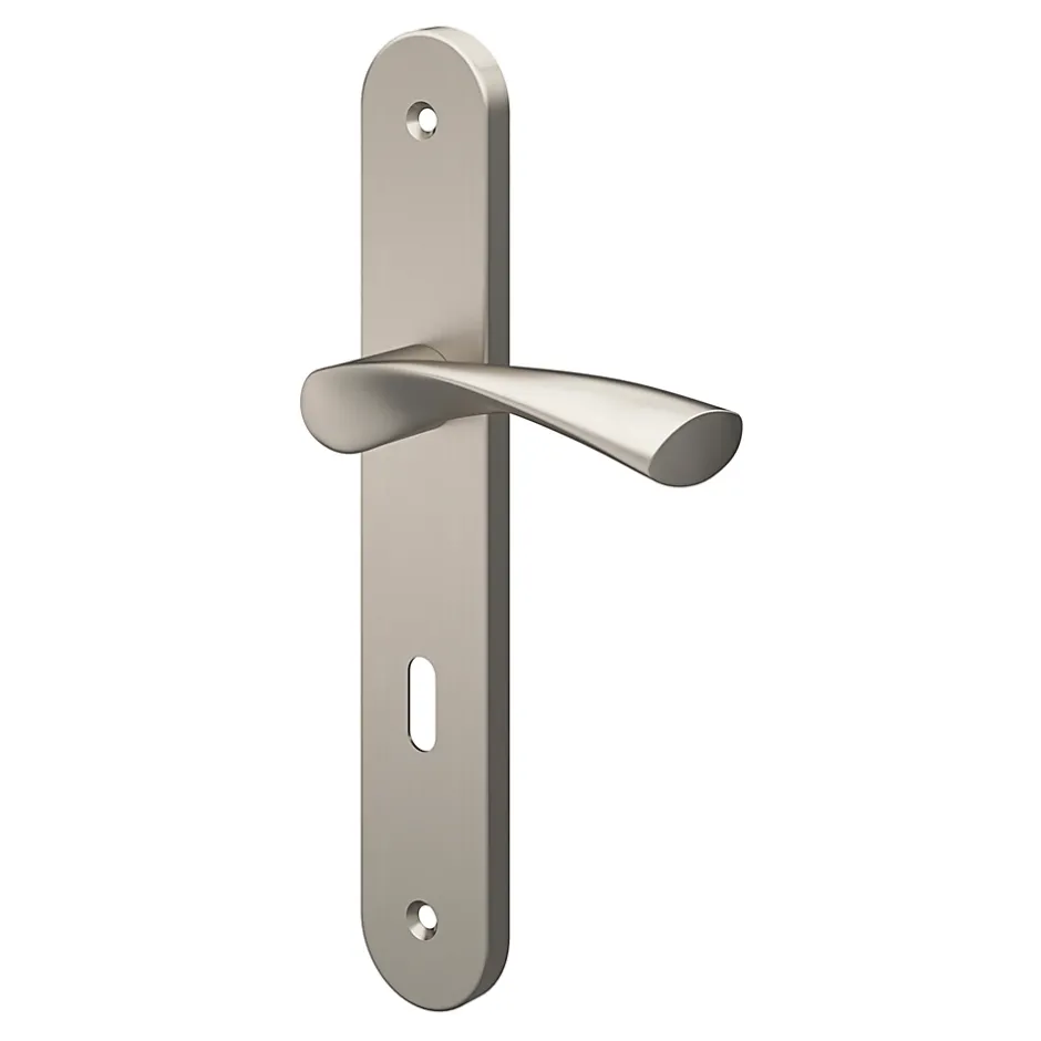 Ensemble poignée sur plaque rond serrure GoodHome Breage effet nickel satin gris L.120.5mm x l.40mm entraxe 195mm