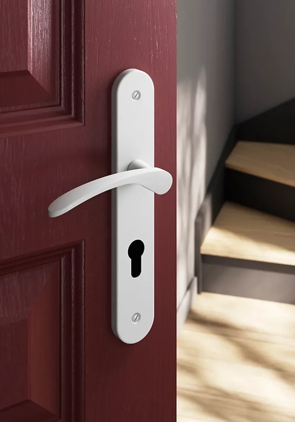 - Poignée de porte tendance sur plaque offrant une touche décorative à votre porte