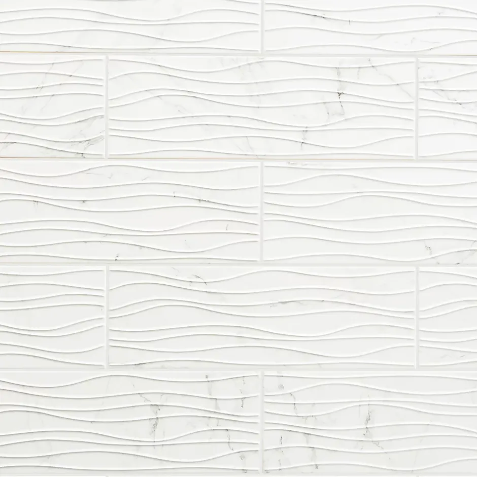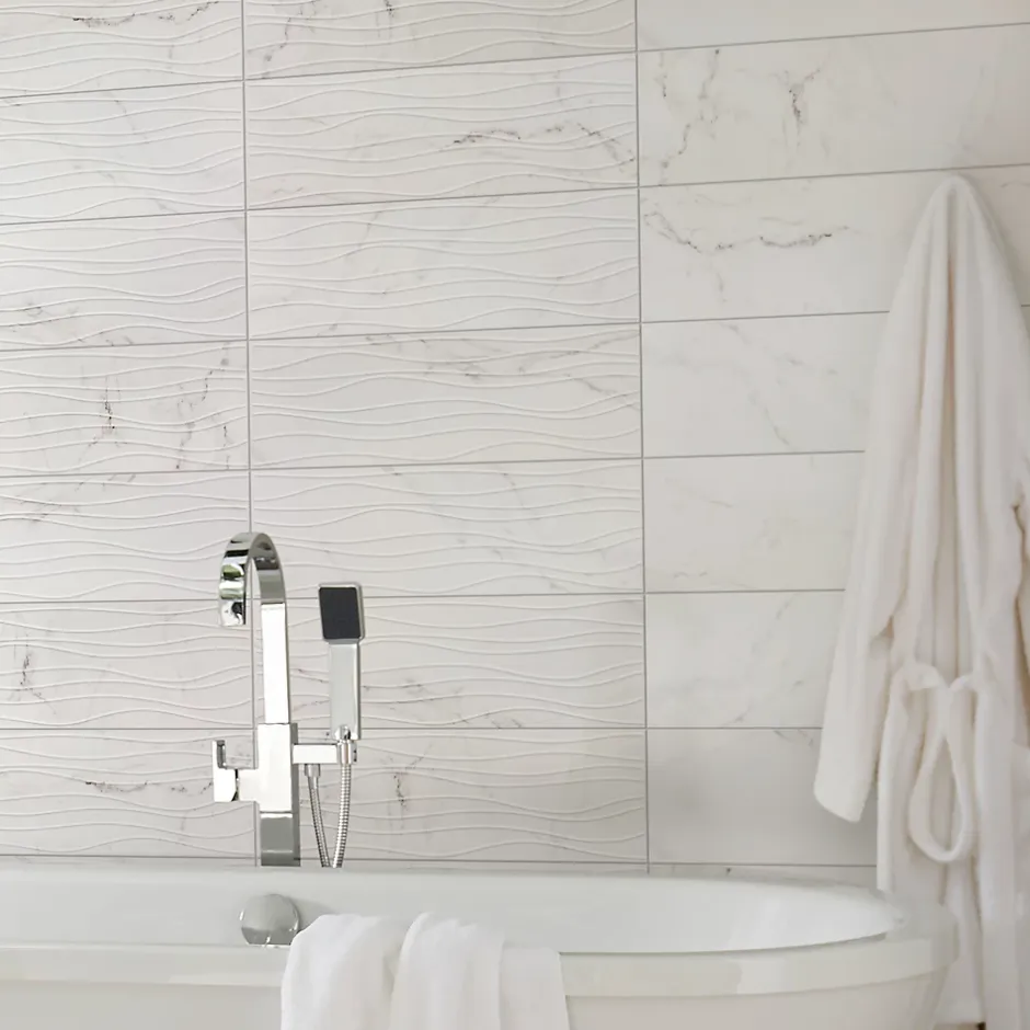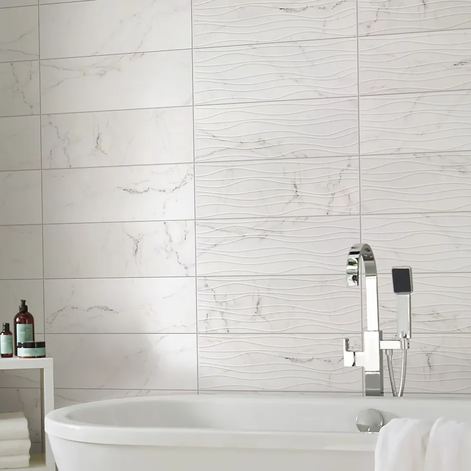 Faïence murale effet marbre blanc décor vagues L.60 x l.20 cm x ép.9,4 mm – lot de 9, GoodHome Aruma