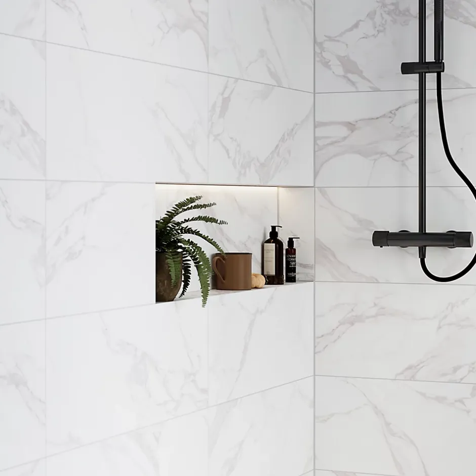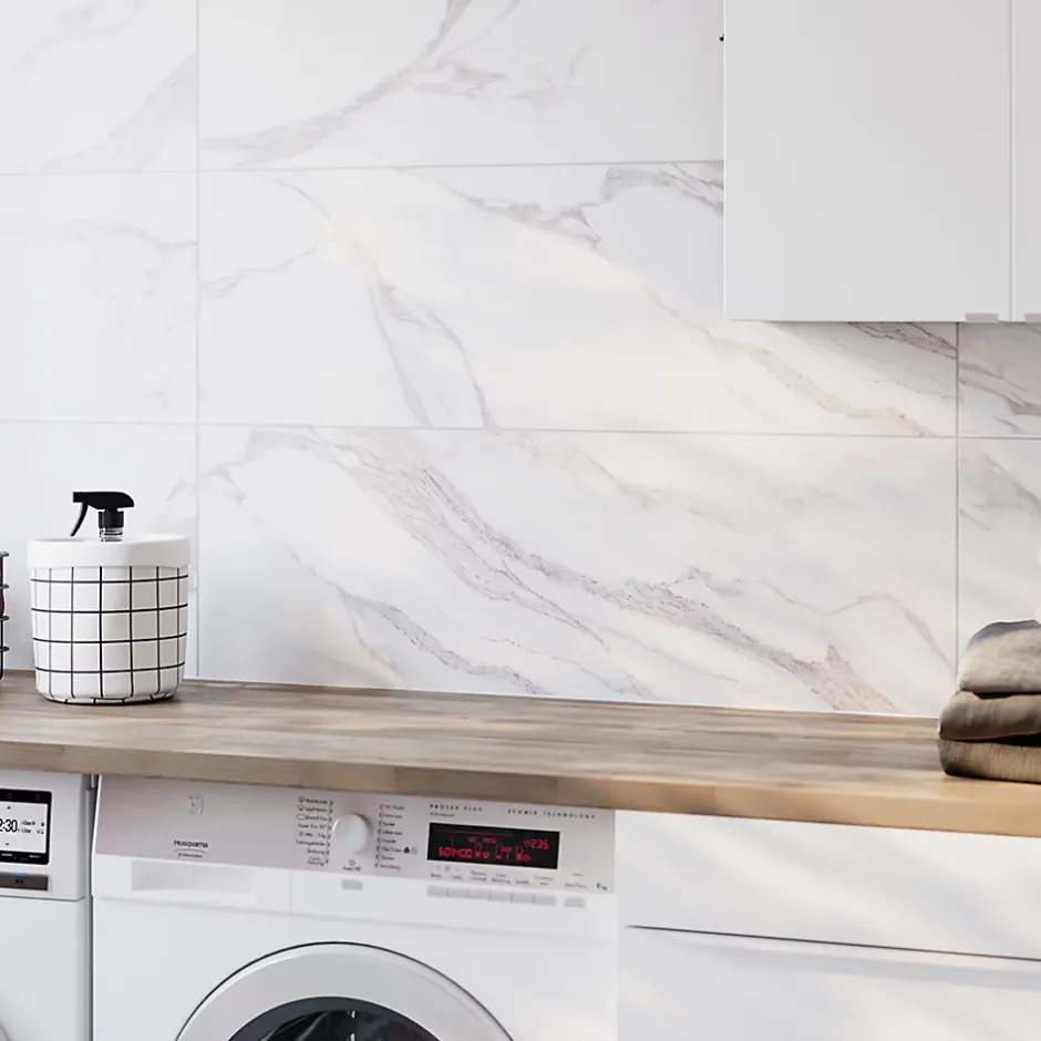 Faïence murale effet marbre blanc mat L.90 x l.30 cm x ép.8,7 mm – lot de 5, GoodHome Oazis