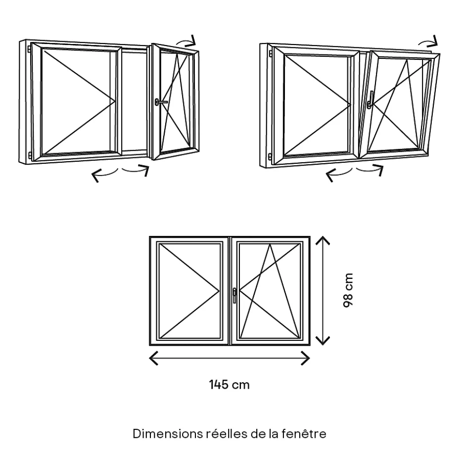 - Dimensions réelles hors tout : l.145 x h.98 cm