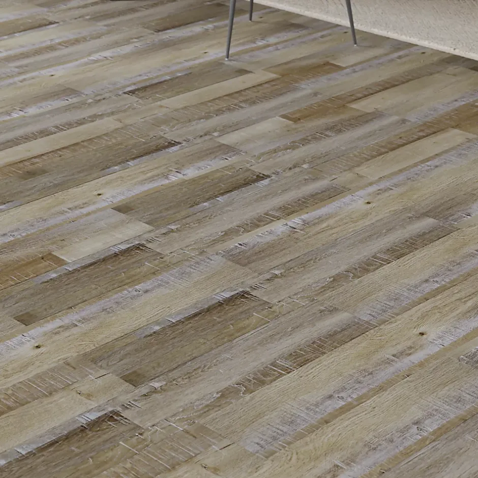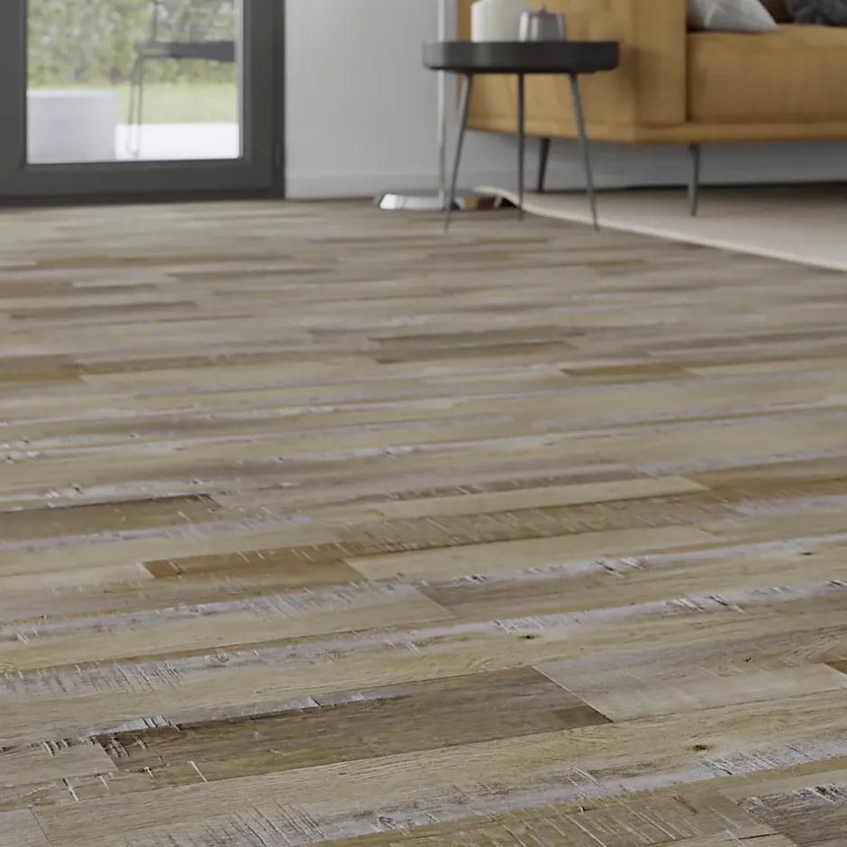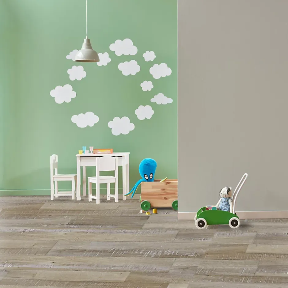 - Le revêtement de sol peut être coupé avec un cutter et est simple à installer grâce à son côté adhésif. Les lames se collent et se déposent facilement et sont parfaites pour la rénovation.