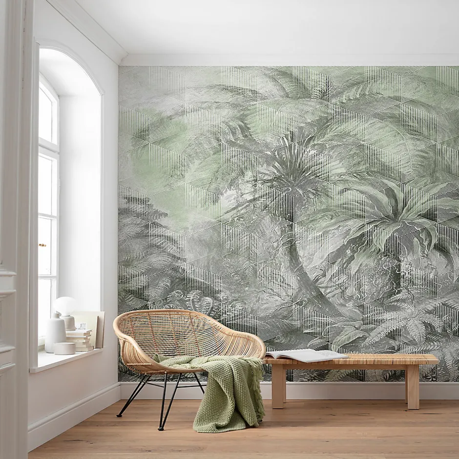 Papier peint panoramique intissé GoodHome Tanan vert pâle