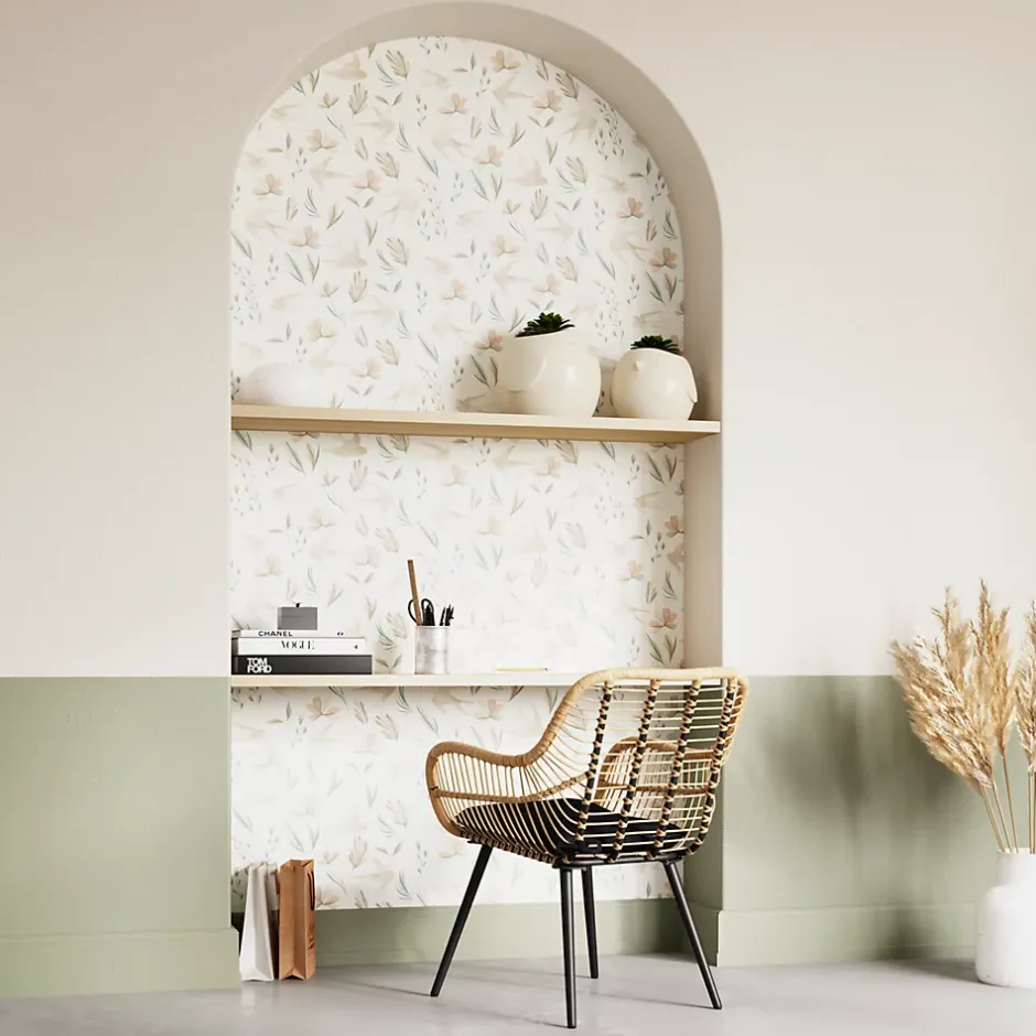 Papier peint pré-encollé vinyle intissé fleuri Easy Roll GoodHome Aubourne beige l.53 x H.1005 cm
