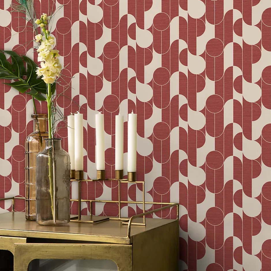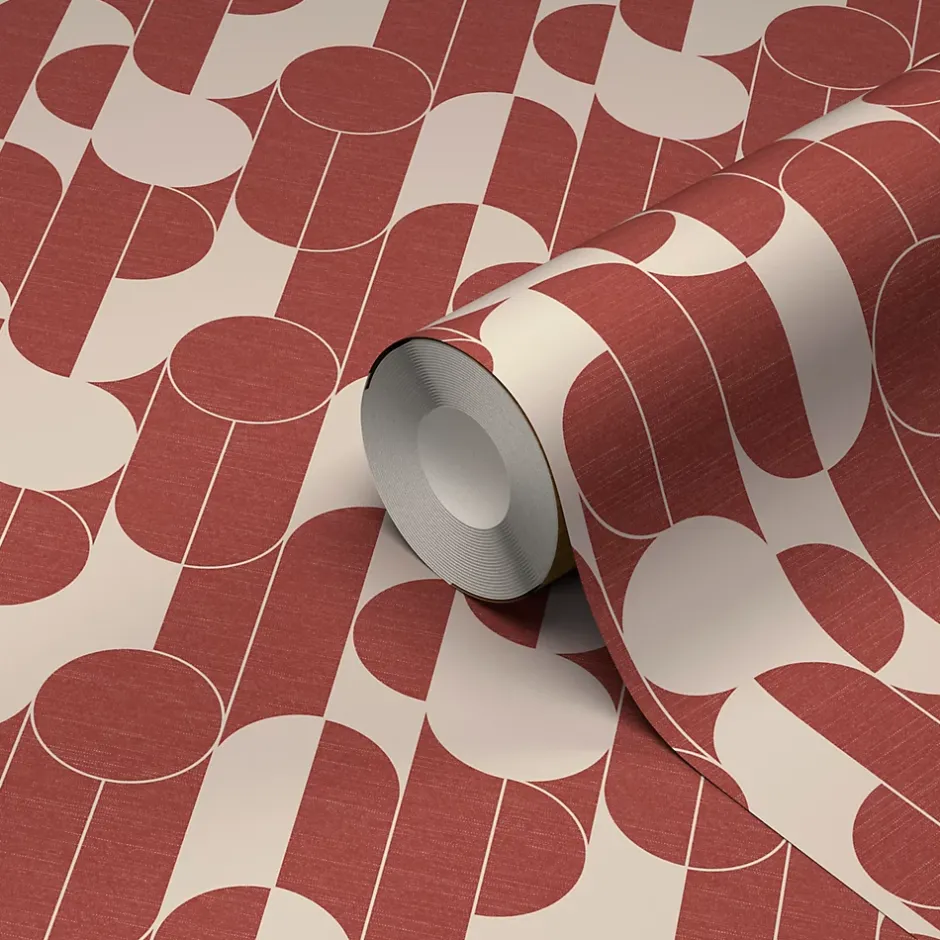 Papier peint vinyle intissé rond géométrique GoodHome terracotta et blanc L.10m x l.53cm