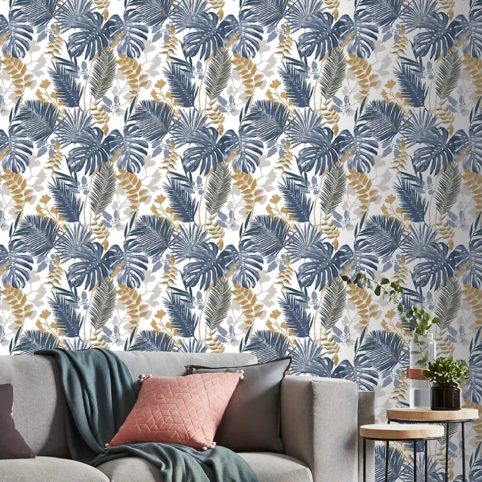 Papier peint vinyle sur intissé GoodHome Ferula bleu 53 cm