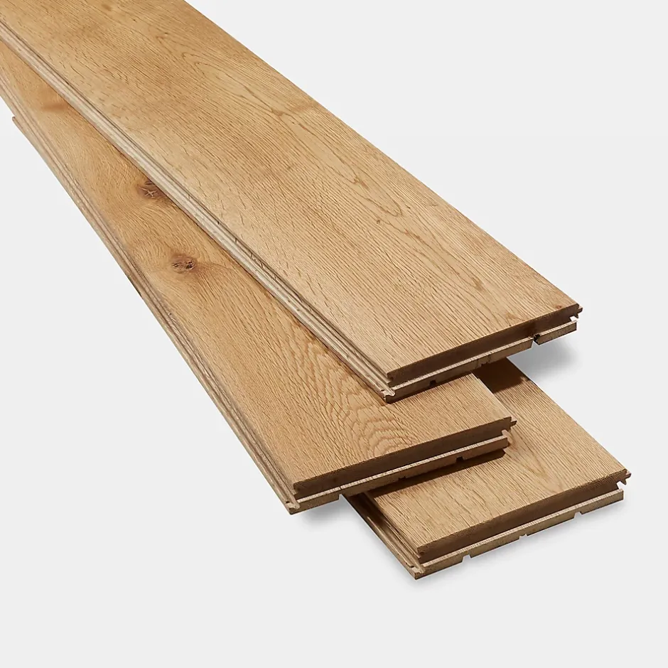 Ces lames de parquet massif noble et authentique, chacune constituée d’une seule pièce de chêne, seront la pièce maîtresse de votre intérieur pour de nombreuses années. Votre parquet gagnera en caractère avec le temps, mais il peut être poncé si besoin, pour le garder comme neuf pour longtemps.