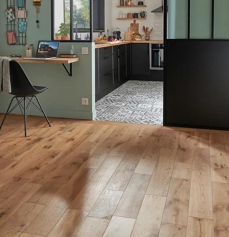 - Ce parquet est idéal pour une utilisation dans les couloirs, les espaces de vie et les chambres