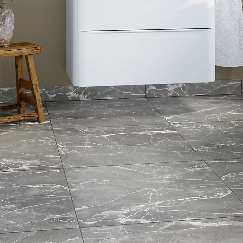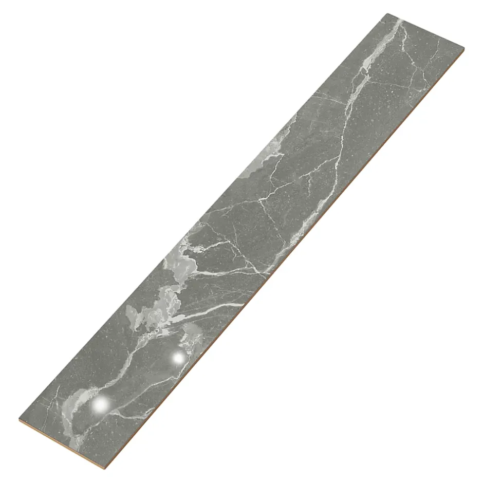 Plinthe en carrelage effet marbre gris brillant L.60 x l.7,5 x ép.8,5 mm – lot de 4, GoodHome Aruma