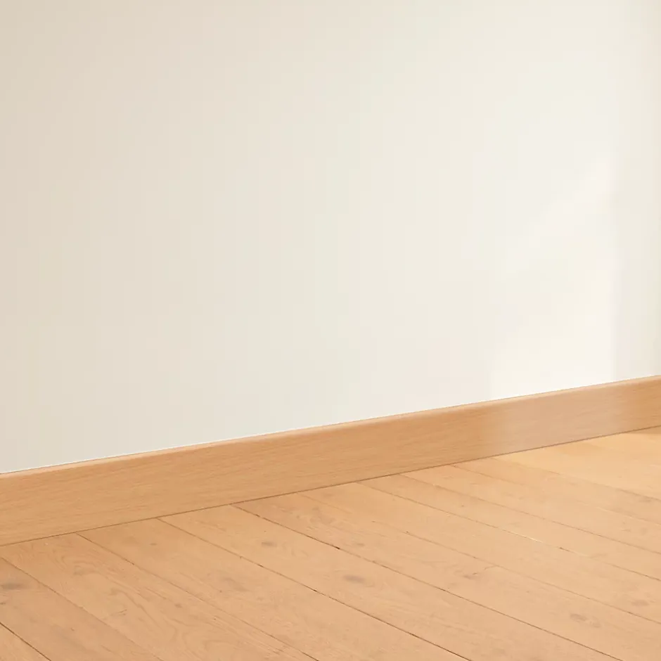 - Recouvertes d’une feuille décorative, ces plinthes se coordonnent parfaitement avec votre sol en bois