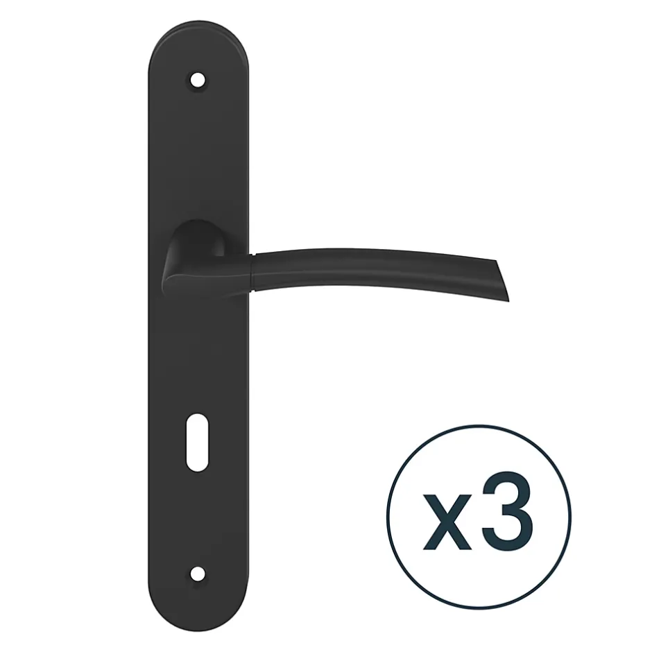 Lot de 3 poignées sur plaque avec serrure, noir mat, L.128mm x l.40mm, entraxe 195mm, GoodHome Hirel