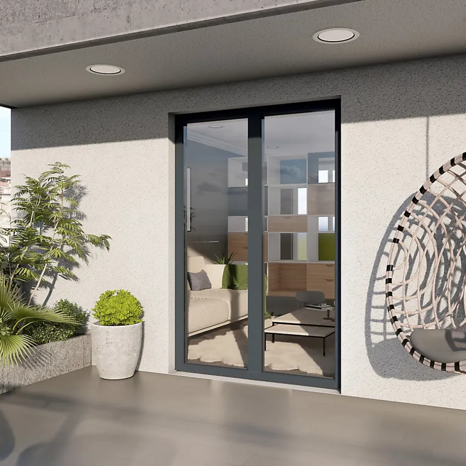 Porte fenêtre alu 2 vantaux tirant droit GoodHome gris – 140 x h.215 cm – Uw 1,7