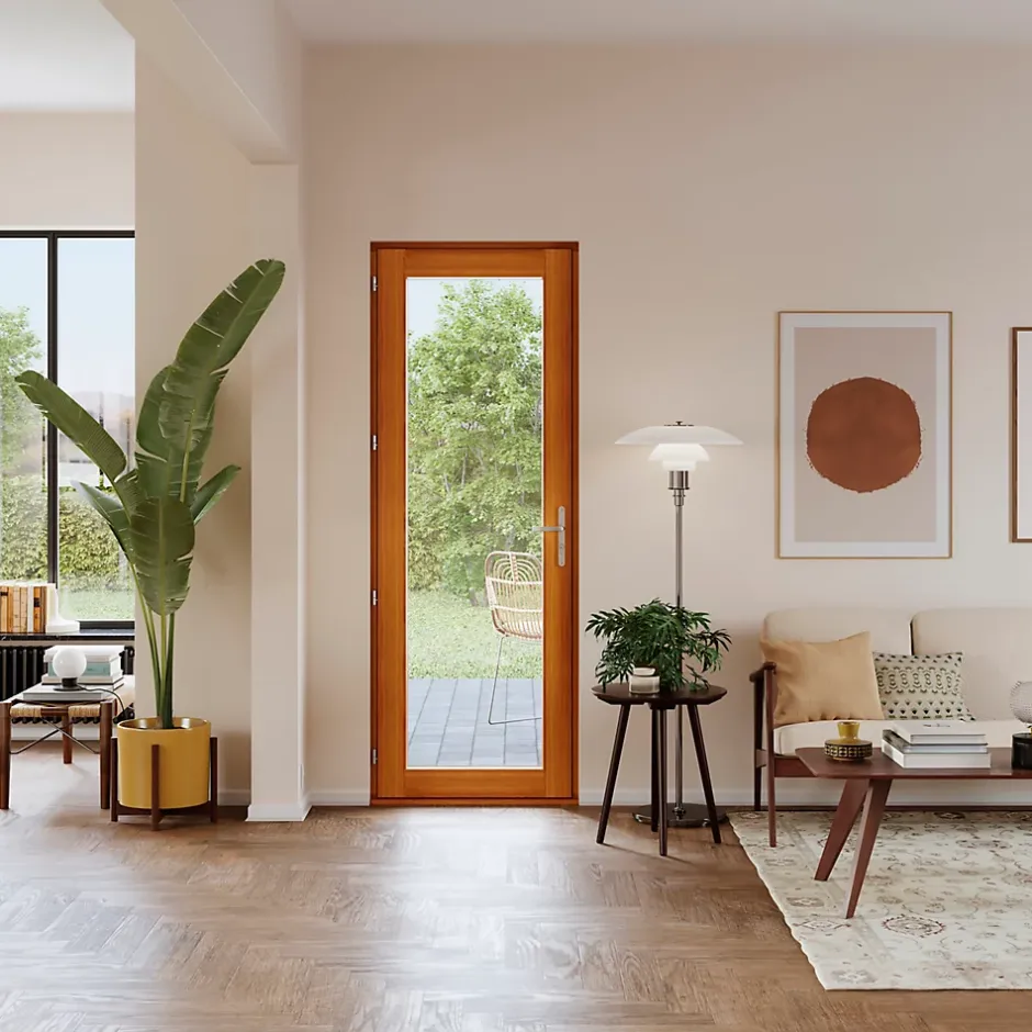Cette porte fenêtre en bois à double vitrage assure une très bonne isolation phonique et thermique, dans un style traditionnel à vernir ou peindre dans la couleur de votre choix.