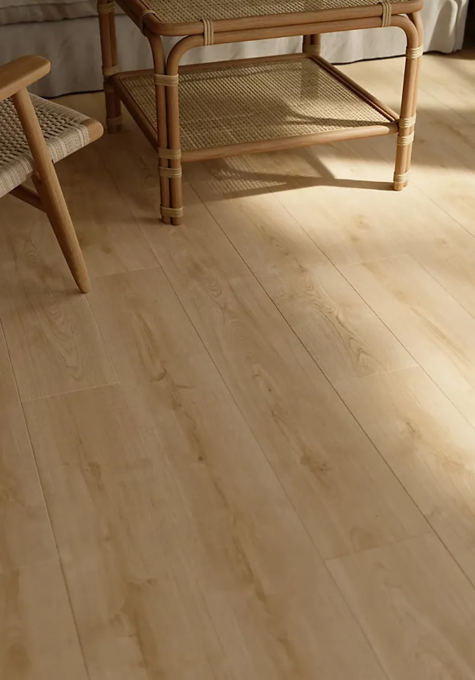 Sol stratifié Colville GoodHome, passage intense AC5, effet chêne blond, L.129 cm x l.19,3 cm x ép.8 mm, résistant à l’eau