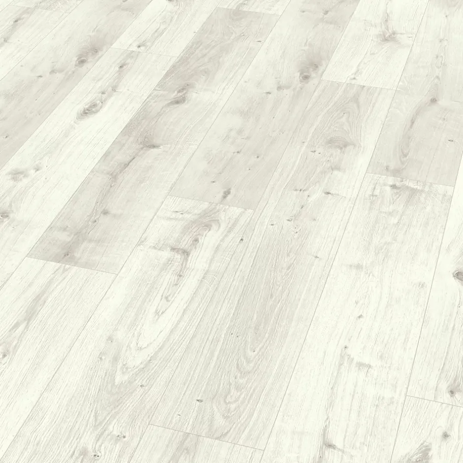 Sol stratifié Rowley GoodHome, passage élevé AC4, effet chêne blanchi, L.129,2 cm x l.19,3 cm x ép.8 mm, résistant à l’eau