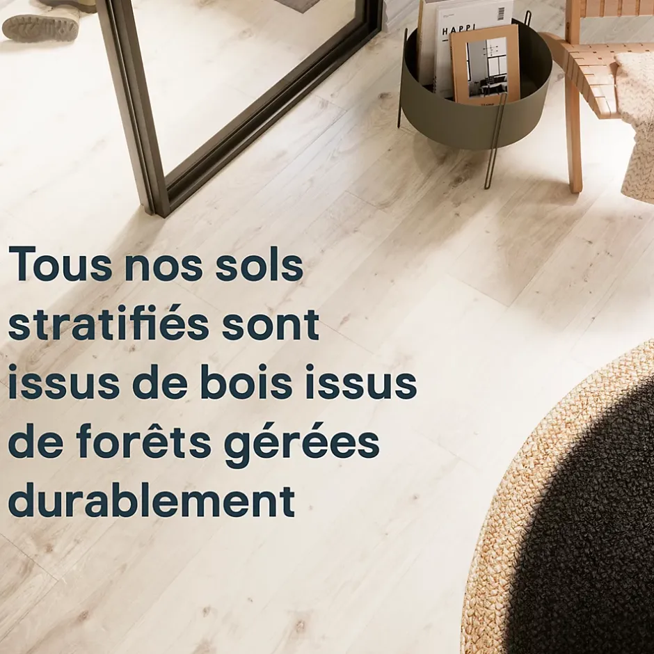 Ce Sol stratifié à clipserGoodhome imite parfaitement l’apparence du bois naturel. Les lames chanfreinées 4 côtés confèrent un aspect bois authentique à votre sol. Ce sol convient à toutes les pièces de votre maison, y compris les cuisines et les salles de bains. Il est facile à installer grâce à un système de pose simple. Tous nos sols stratifiés sont issus de forêts gérées de manière responsable. Les sols stratifiés doivent être conçus pour durer, c’est pourquoi les nôtres sont garantis 15 ans. Nous vous recommandons d’utiliser une sous-couche adaptée pour de meilleures performances thermiques et acoustiques de votre sol.