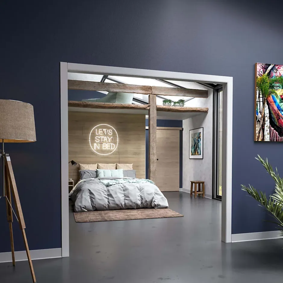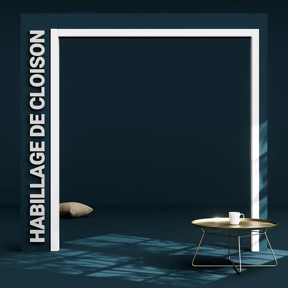 L’habillage de cloison : l’astuce pour ouvrir les espaces en grand La transformation des encadrements de porte et des ouvertures murales est considérablement améliorée grâce à l’habillage de cloison. Avec ce kit d’habillage pour encadrement de porte jusqu’à 2,20 m, obtenez une finition propre et élégante lors de la suppression d’une double porte battante par un système coulissant ou lors de la création d’une grande ouverture murale. Fabriqué en MDF et disponible en blanc avec un revêtement en papier décoratif, cet habillage de cloison peut être personnalisé selon vos préférences de couleur pour s’harmoniser parfaitement avec votre intérieur. De plus, il est doté d’un système re-coupable qui permet de l’ajuster à différentes tailles d’ouvertures, offrant ainsi une grande flexibilité d’utilisation Dimensions de réservation : h. 213 cm x l. 220 cm Coloris blanc possible à peindre Re-coupable Un profil extensible de 70 mm à 100 mm : l’avantage de l’habillage de cloison Le kit comprend divers supports et joues, notamment un profil extensible qui s’ajuste à la taille de votre ouverture et à l’épaisseur de votre cloison, variant de 70 à 100 mm. Les profils d’angle avec lèvres de recouvrement s’adaptent parfaitement à la forme du dormant ou de la cloison, assurant une intégration harmonieuse. L’habillage d’encadrement de porte Coulicool de 2,20 m est conçu pour une installation facile. Il s’applique simplement par collage, à l’aide d’une colle adaptée au support. En cas de besoin, il peut être nettoyé avec de l’eau savonneuse, offrant ainsi une solution pratique et durable pour votre projet d’aménagement. Pose facile par collage Installation sans outillage spécifique Profil extensible de 70 mm à 100 mm